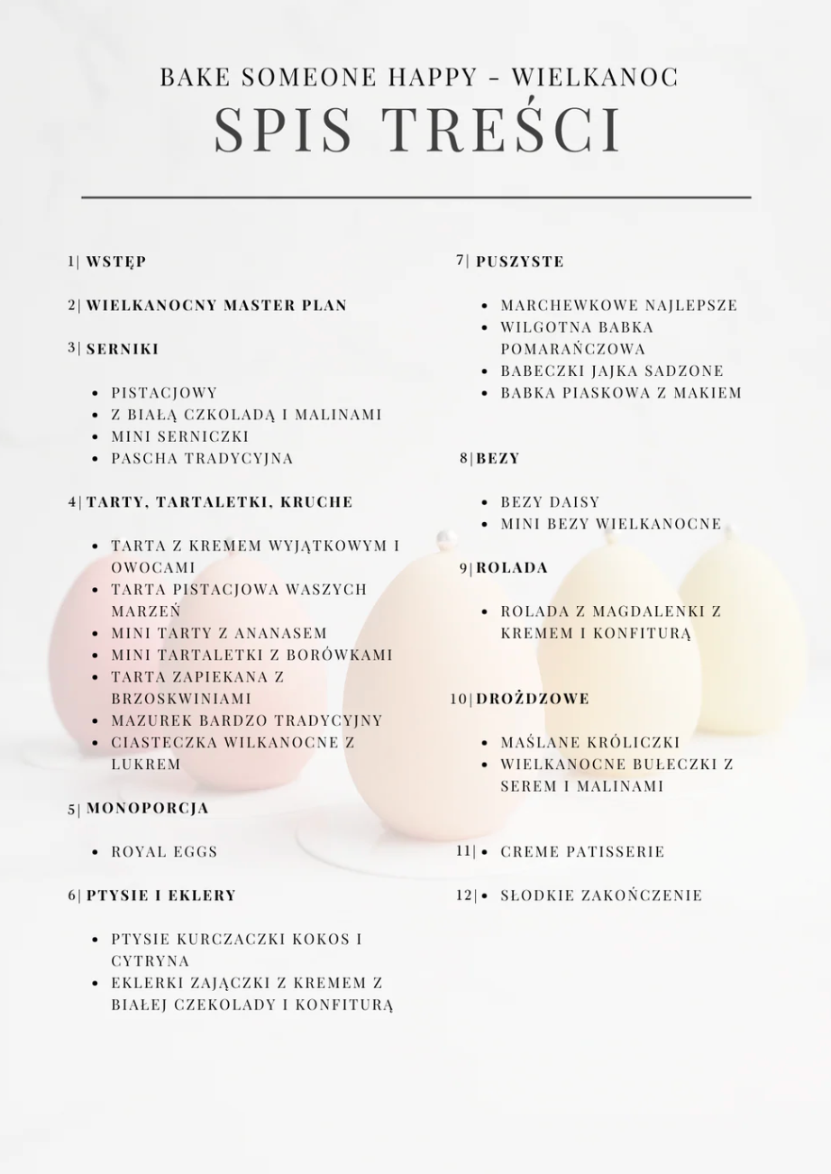 - ptysie, eklery, bezy, bułeczki drożdżowe i wielkanocne klasyki.